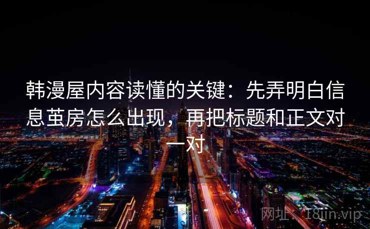 当你能够将标题和正文进行巧妙的“对接”,不仅能更深入地理解韩漫屋里的每一部作品,更能在这个信息泛滥的时代,成为一个真正清醒、独立、且充满智慧的读者。下次当你打开韩漫屋,不妨试试这个方法,也许你会发现,那些被你“错过的精彩”,原来一直在那里,只是需要你拨开信息茧房的迷雾,去认真地发现。